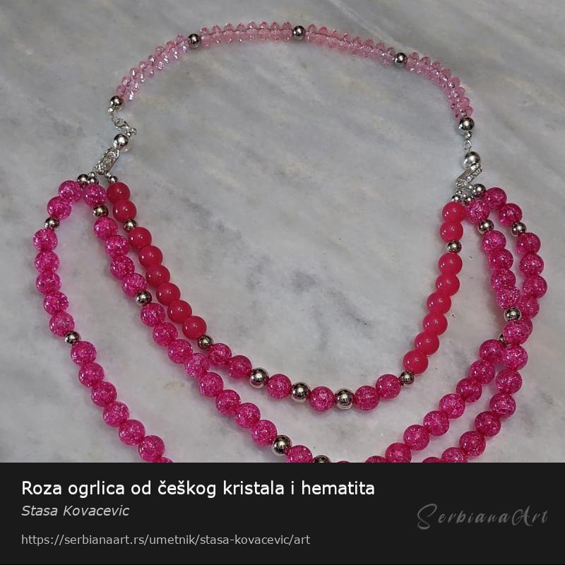 Ručno izrađena ogrlica od češkog kristala, hematita, i cirkonima.