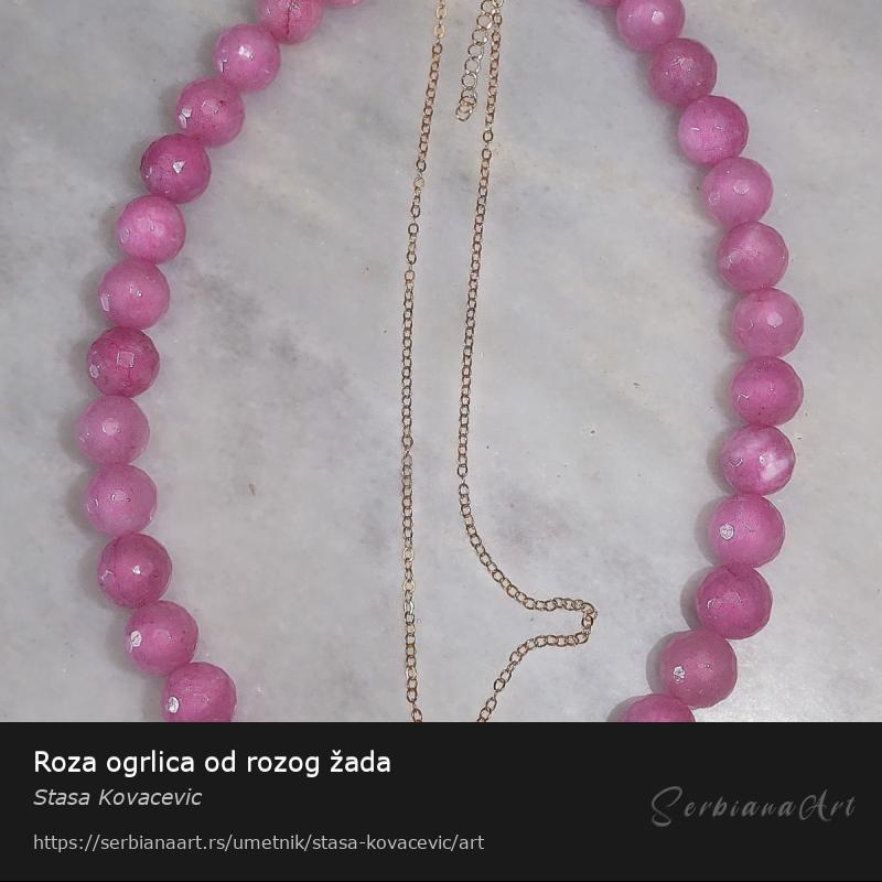 Ručno izrađena ogrlica od rozog žada sa dodatcima pozlate, i kopče nerđajući čelik.