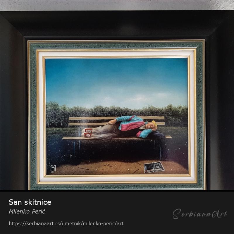San skitnice 22x27cm , monotipija na platnu sa doslikanim detaljima, uramljena, sa mesinganom pločicom.