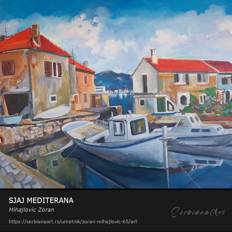 Медитеранска сцена, чамци, море, старе рустикалне грађевине су моја највећа инспирација, моје сликане приче. Оригинална акрилна слика на платну.