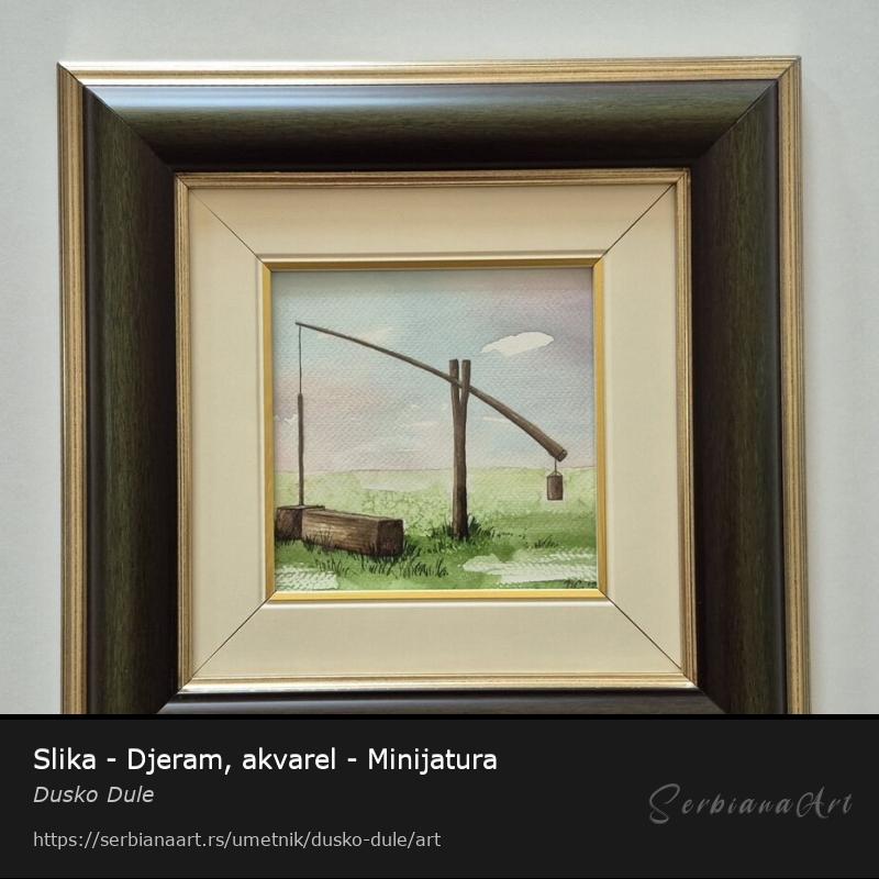 Slika Djeram, tehnika akvarel. Minijatura. Prelepo umetnicko delo. Slika je uramljena u jako lep ram, dimenzije slike sa ramom 33 x 33. Privatna kolekcija.