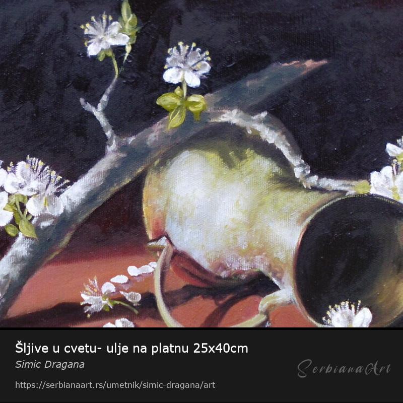 Sljive u cvetu- uramljeno ulje na platnu 35x50cm