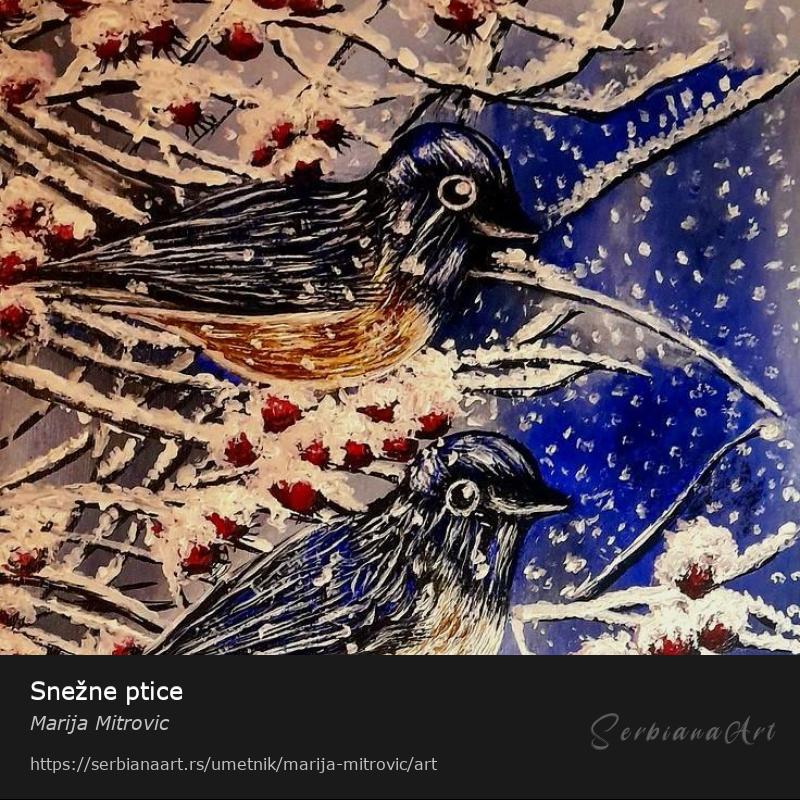 Slika snežne ptice uradjene su na slikarsko platno bez blind rama sa akrilnim bojama.