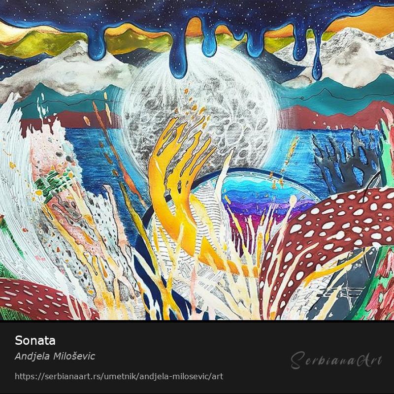 „Sonata“ predstavlja tokove kao čistu nekontrolisanu muzičku energiju - seriju naizgled haotičnih i rapidnih promena koje se bore za svoje mesto u trenutku, i na platnu. A ipak, mimo raznobojne zbrke definisanih tonova i boja, nazire se mistično jezgro ispunjeno melanholijom i nostalgijom - neometena srž koja istrajava bez obzira na pandemonijum osećanja, misli i previranja oko sebe.