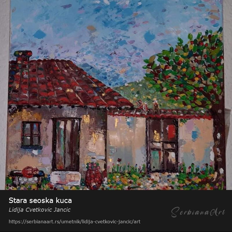 Živim i radim u Srbiji. Rodjena sam 1975. godine. Slikarstvom se bavim dugi niz godina, moze se reći više od 30 godina. Radim religiozne teme, stare kućice koje imaju dušu, pejzaže, mrtvu prirodu. Bavim se i vajarstvom, kao i izradom brojanica. Obožavam senčanja i grafiku. Koristim uljane i akrilne boje. Diplomirala sam marketing u Parizu. Trenutno sam na poziciji savetnika u Vladi RS.Umetnik Lidija Cvetkovic Jancic (Srbija).