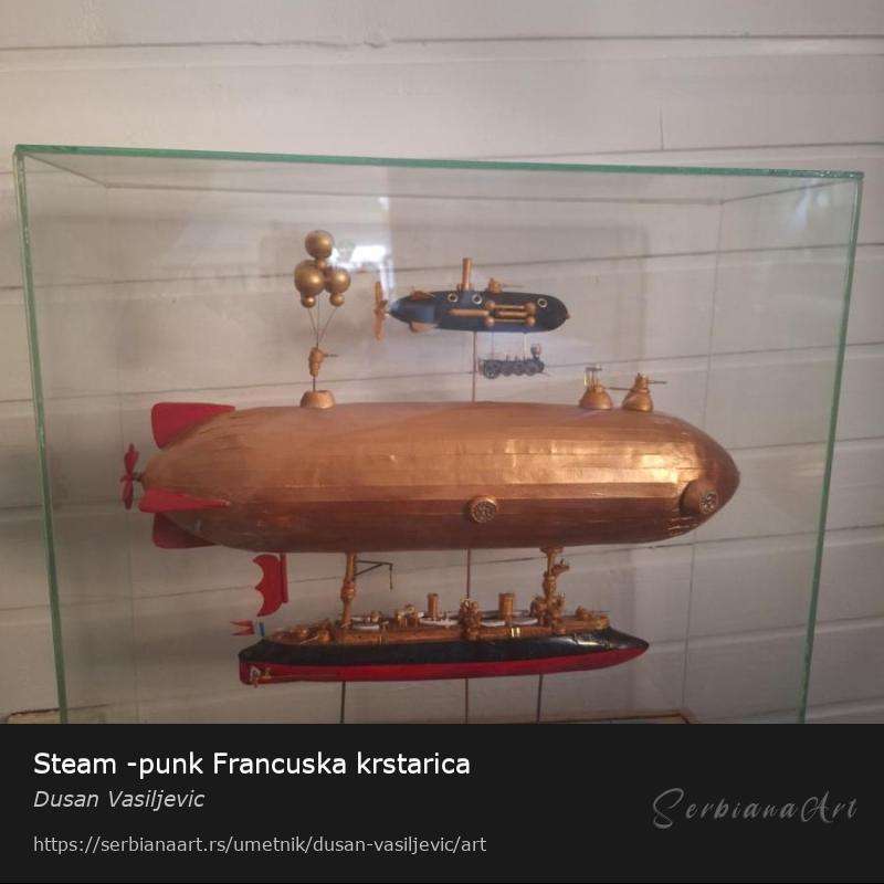 Brod je izradjen od kombinovanih materijala (drvo,metal) ofarban akrilnim bojama. Kompletna rucna izrada pocevsi od nacrta do modela.