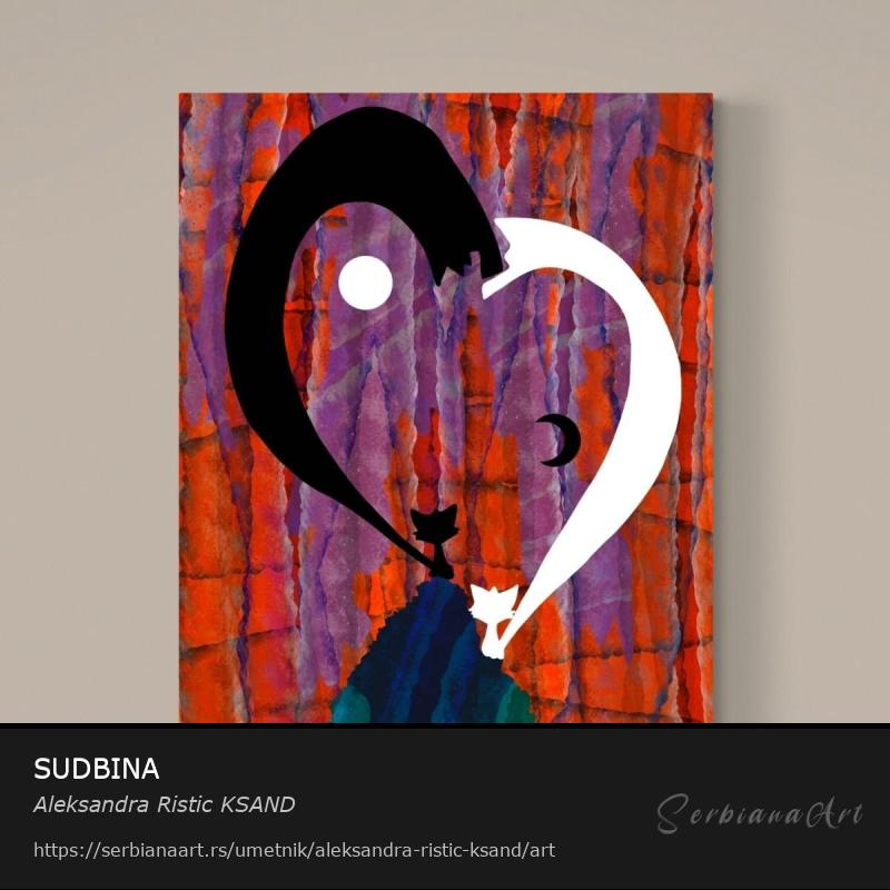Odvažna paleta boja oživljava sliku, stvarajući hipnotišuću harmoniju između dana i noći, svetla i tame. Savršeno za ljubitelje mačaka i umetnosti, "Sudbina" dodaje dašak topline i dubokog značenja modernim enterijerima ili bilo kom prostoru koji slavi kreativnost i bezvremensku lepotu ravnoteže i povezanosti.