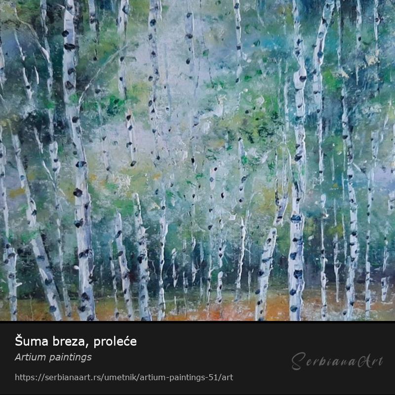 Još jedna u nizu slika sa motivom breza nudi posmatraču mogućnost da za trenutak, u mislima izađe iz svoje sobe i da se opusti u šetnji kroz ovu zelenu šumu.Podelite i promovišite ovo delo