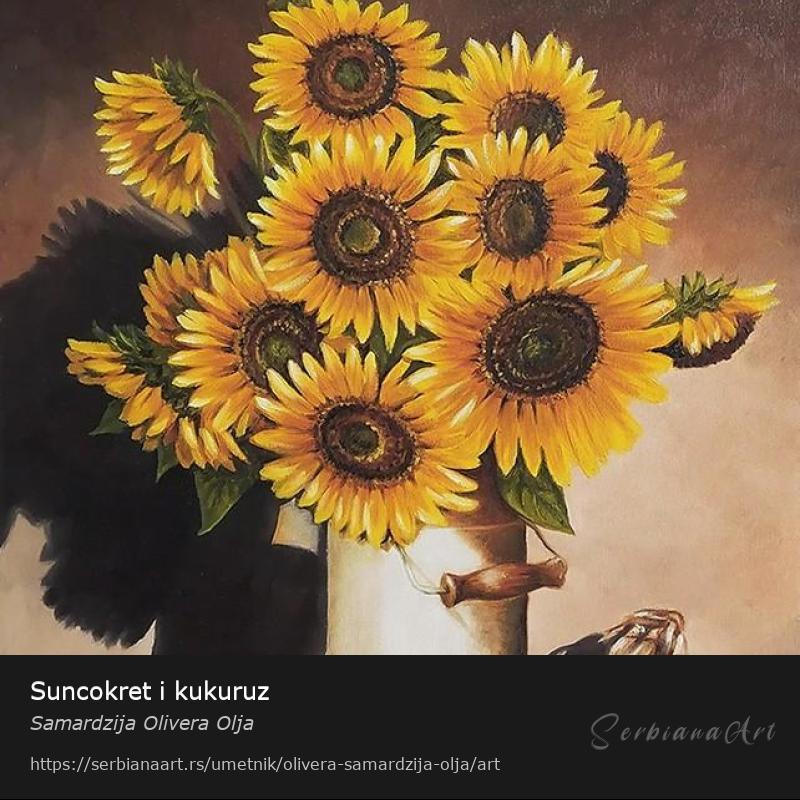 Suncokret i kukuruz, ulje na platnu 40x50cm