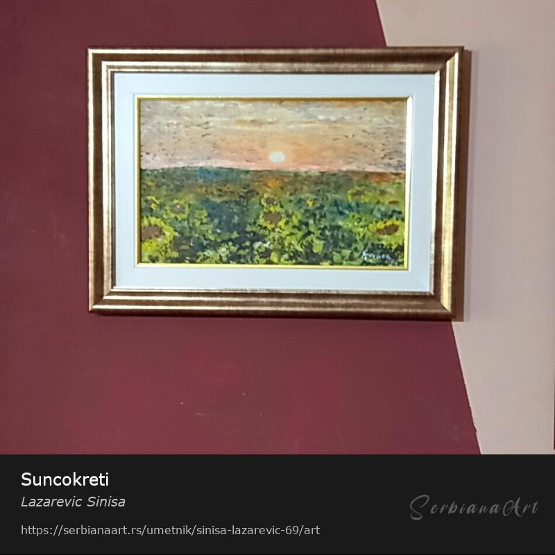 Slika Suncokreti ulje na platnu od 40x20cm oduševiće ljubitelje umetnosti i prirode.Suncokreti su prikazani u punom sjaju i prirodnim bojama,te će savršeno osvetliti bilo koji deo Vašeg doma.Ova slika je odličan način da unesete malo prirode u Vaš životni prostor i osećati se kao da ste na sunčanom polju.Original slika sa potpisom