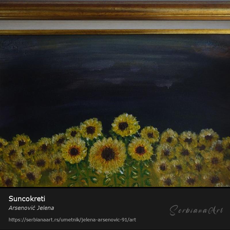 Uramljeno * *Suncokreti *30k20 cm + ram * akril na lanenom platnu