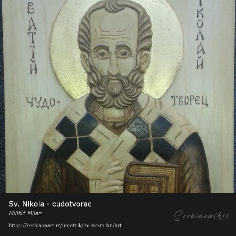 Ikona u duborezu. Koriscen materijal, drvo lipe. Tonirano orahovim bajcem i zasticena selakom. Oreol 23 karatno zlato.Podelite i promovišite ovo delo