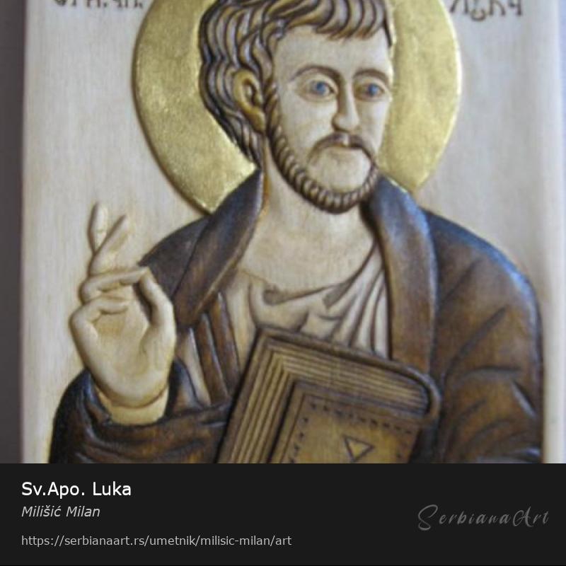 Korišten materijal: drvo topola, oreol pozlaćen 23 karatnim zlatom,tonirano orahovim bajcom i šelakom.Podelite i promovišite ovo delo