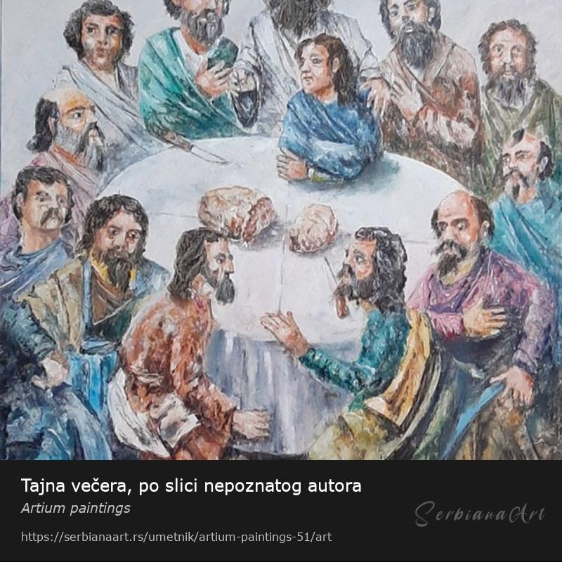Slika ``Tajna večera` je nastala prema crno beloj fotografiji nepoznatog autora. Umetnik joj je dao svoj lični pečat.Podelite i promovišite ovo delo