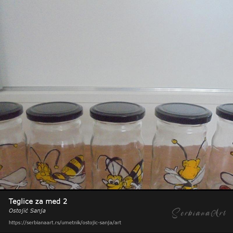 Poklon tegle.Ručno oslikane teglice za med akrilnim bojama.Slika je zaštićena akrilnim lakom.Zapremina 370 ml.Podelite i promovišite ovo delo