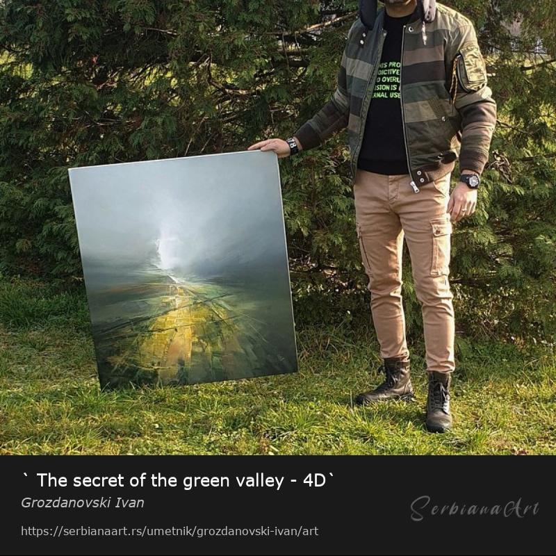 " The secret of the green valley - 4D "SPECIAL PRICE !!!.....Painted with expressive moves.......with pallet knife and with a brush..... I'm giving all best, to be represent the true colors of the paintings in the photos, but sometimes you can see a little difference in tone.. I take good care packing my art, so it comes to you in the great shape. Note !!! The painting on the wall of the room is not in true scale....!!!! All my artwork is original !!!Podelite i promovišite ovo delo