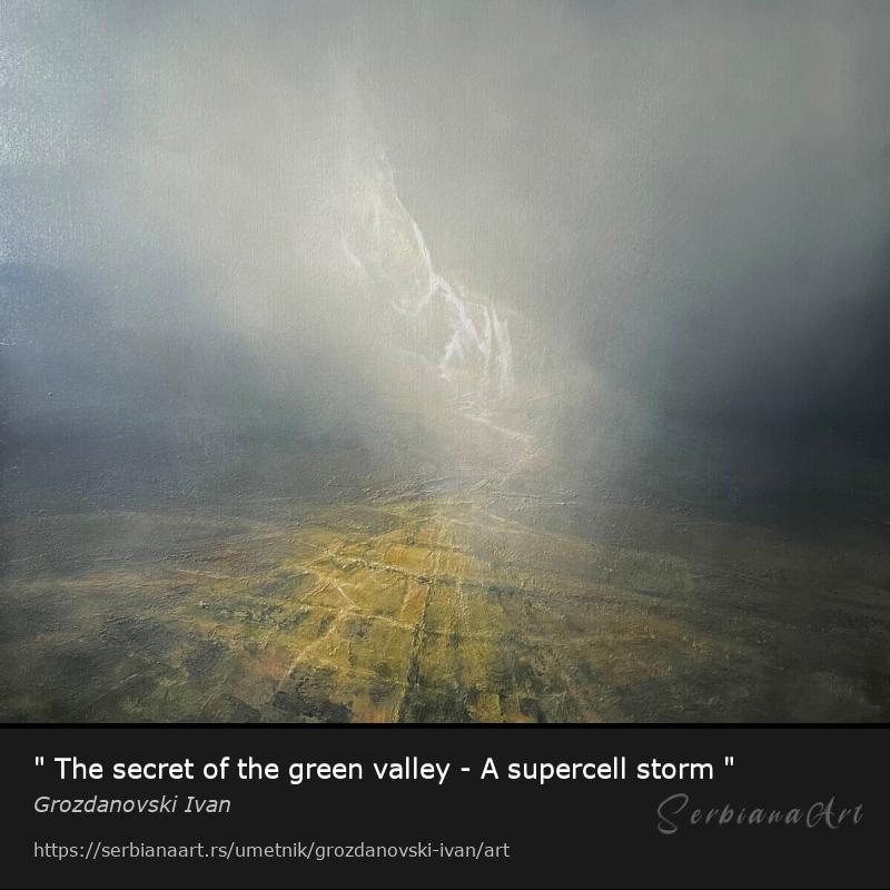 " The secret of the green valley - A supercell storm "....Painted with expressive moves.......with pallet knife and with a brush.....W 100 x H 100 cm ( W 95 x H 95 cm ,when the canvas is stretched on the wooden frame )....