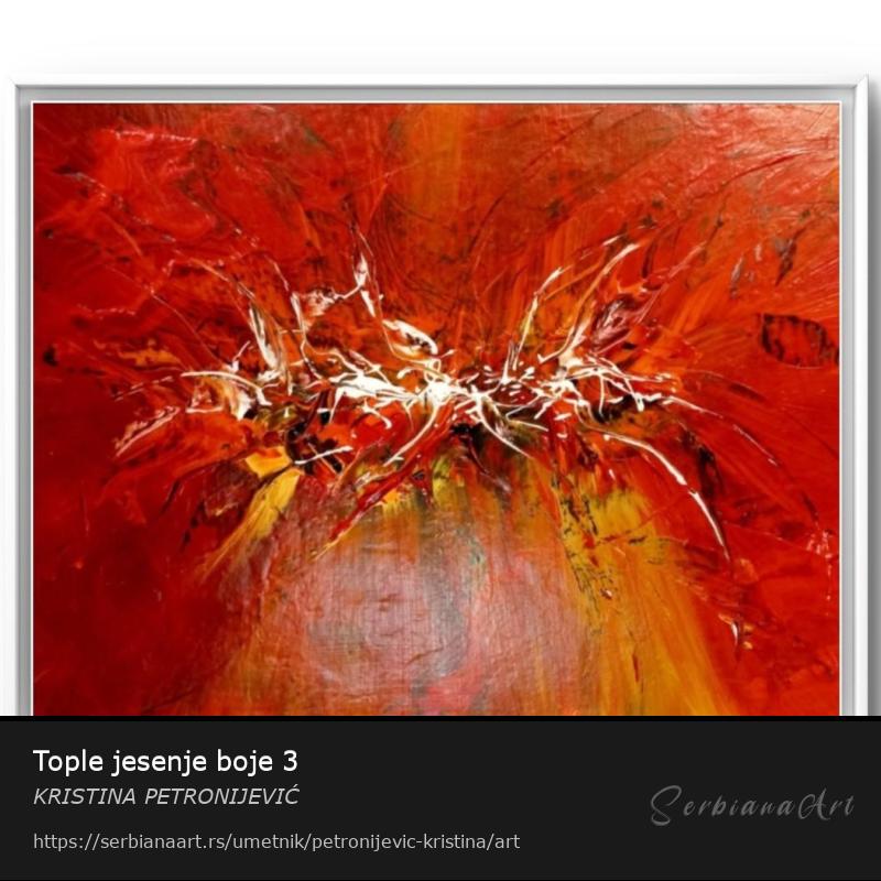 Komunikolog, slikarstvom se bavim preko deset godina. Slikarski pravci abstrakcije i modernost slikarstvo u toplim bojama koje podjednako ukrašavaju dom ili poslovni prostor. Na stotine urađenih slika, zadovoljnih poklonika slikarstva jesu uspeh i satisfakcija koja motiviše za dalji rad. Boje i pokreti su život.Umetnik KRISTINA PETRONIJEVIĆ (Srbija).