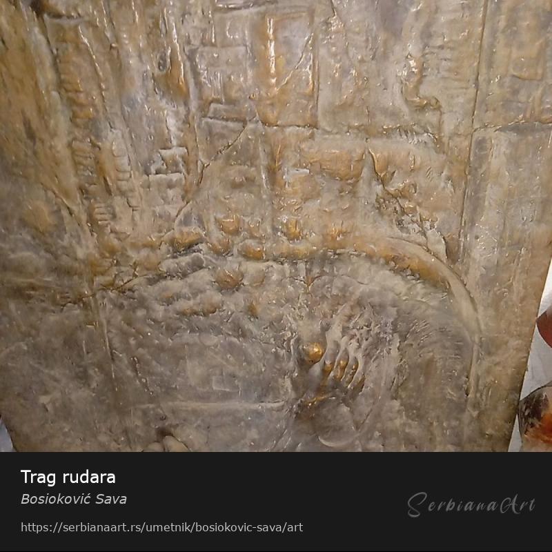 Rad akademskog vajara iz Bora, Save Bosiokovića (1944), ``Trag rudara``, na katodi kao zaštitnom znaku i ponosu borskih rudara i topioničara. Rad u bronzi iz 1986 godine, dimenzije, visina 100 cm, širina 70 cm, težine oko 200 kg.Podelite i promovišite ovo delo
