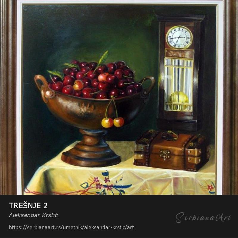 IZUZETNO LEPA SLIKA. Ulje na platnu TREŠNJE 80cm x 60cm, uramljena kvalitetnim ramom. MNOGO LEPŠE IZGLEDA UŽIVO! SVE MOJE SLIKE SU RAĐENE PRVOKLASNIM ULJANIM BOJAMA, KOJE GARANTUJU POSTOJANOST I DUGOTRAJNOST, NA PROFESIONALNO PRIPREMLJENOM PLATNU! Kupljenu sliku šaljem kurirskim službama PostExpress, CityExpress, AKS. ..Podelite i promovišite ovo delo