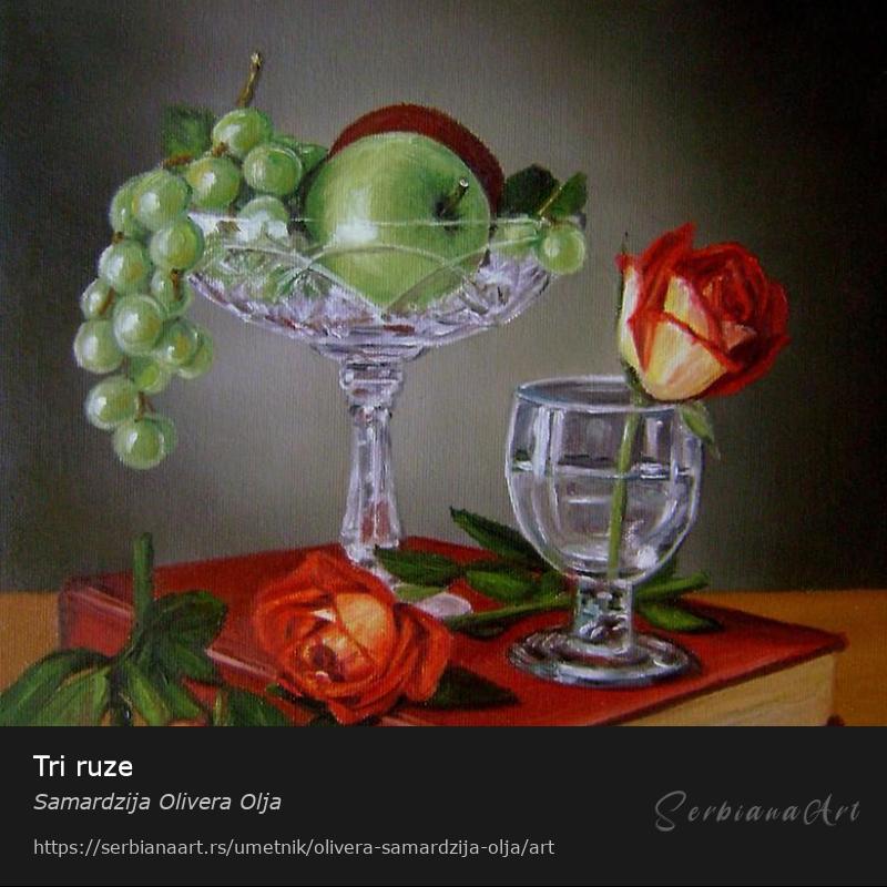 Zivim i radim u Novom Sadu. Studirala sam Gradjevinski fakultet, ali je slikanje oduvek bilo moj hobi, a aktivno slikam od 1995. godine. Imala sam tri samostalne izlozbe i ucestvovala sam na vise kolektivnih. Sve slike su radjene tehnikom ulje na platnu. Moje radove mozete videti na: olja-art.comSlike radim i po narudzbini, tako da mozete sami odabrati motiv i velicinu slike. Slike ne saljem u inostranstvo.Umetnik Samardzija Olivera Olja (Srbija).