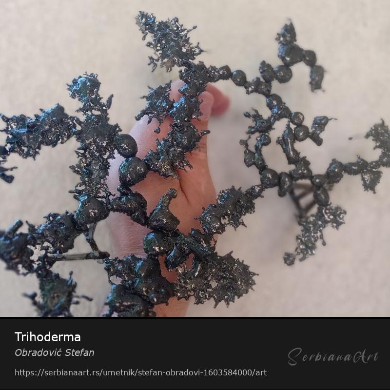 Apstraktna, jedinstvena trodimenzionalna skulptura rađena otpadnim metalom, prelakirana bezbojnim lakom. Postoje tri zakačke samim tim skulpturu možete postaviti u tri različita položaja na zidu ili je jednostavno postaviti na vrh stola, komode...Podelite i promovišite ovo delo