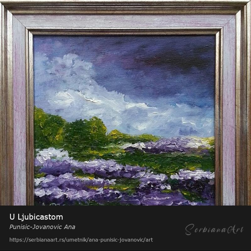 Painting is professionally framed. Dimensions with frame are 26x26 cm.Podelite i promovišite ovo delo