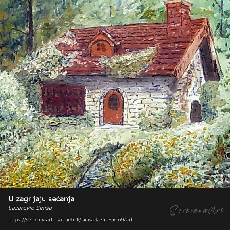 Umetnička slika U zgrljaju sećanja je inspirisana trenucima koje čuvamo u srcu i vraćamo im se u trenucima nostalgije.Svaki potez četkice,svaka nijansa boje,nosi sa sobom delić te tihe intime koja nas obuzima kada se prepustimo sećanjima.Želeo sam da uhvatim taj trenutak topline i nostalgije,koji nas podseća na ljude i mesta koja su nas oblikovali.Pogledajte detalje,dozvolite sebi da budete povučeni u priču koja se krije iza svakog sloja boje.Nadam se da će ova slika pronaći poseban kutak u Vašem domu i srcu,i da će Vam donositi radost i mir svaki put kada je pogledate.