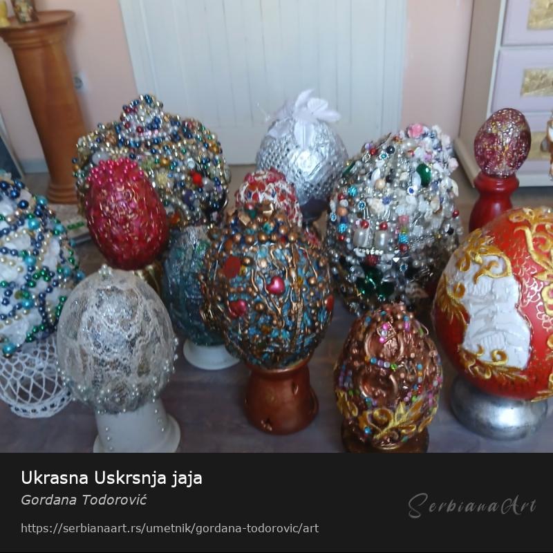 Razna originalna umetnička jaja od raznih materijala i velicina i različitih cena.Ukras za Uskrs i u odabranom prostoru i u domu.Iml.