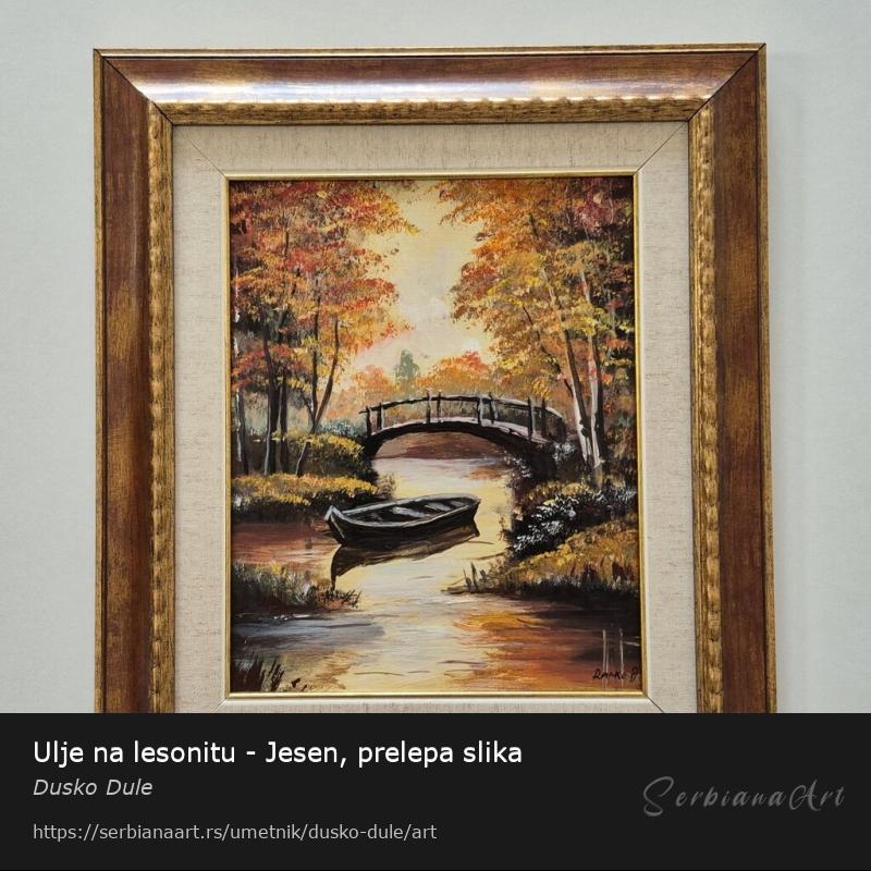 Ulje na Jesen, prelepo umetnicko delo. Slika je uramljena u jako lep ram, dimenzije slike sa ramom 45 x 39. Privatna kolekcija.