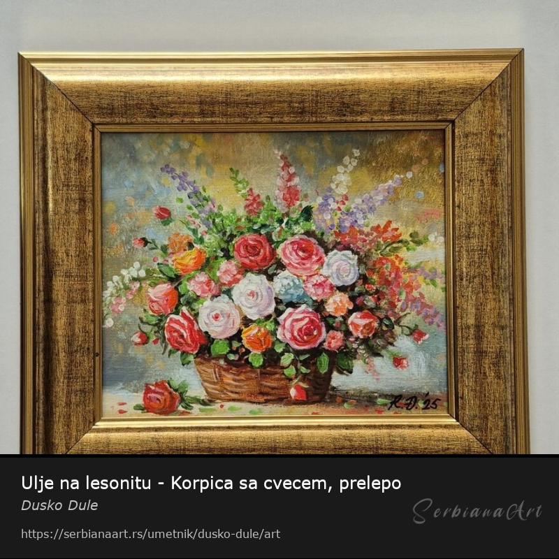 Ulje na lesonitu - Korpica sa cvecem, prelepo