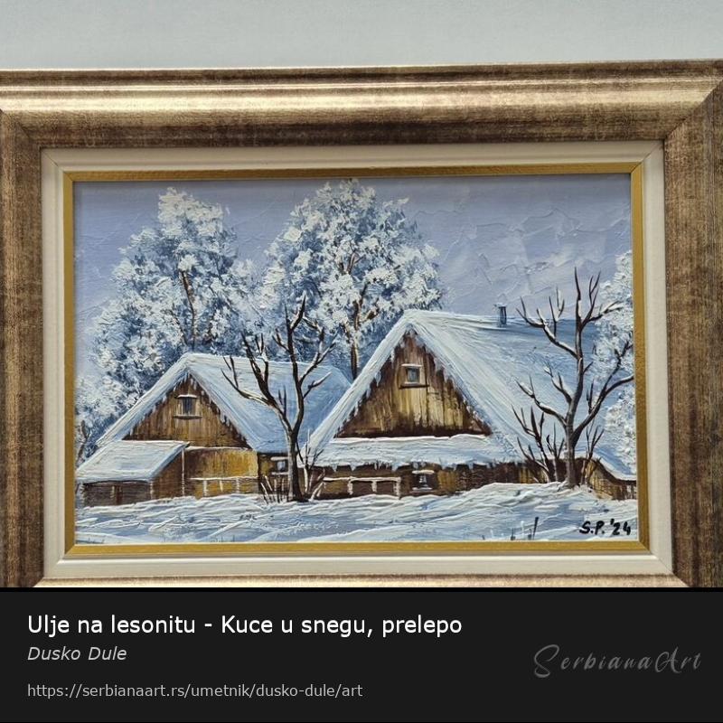 Ulje na lesonitu Kuce u snegu, prelepo umetnicko delo. Slika je uramljena u jako lep ram, dimenzije slike sa ramom 41 x 31. Privatna kolekcija.