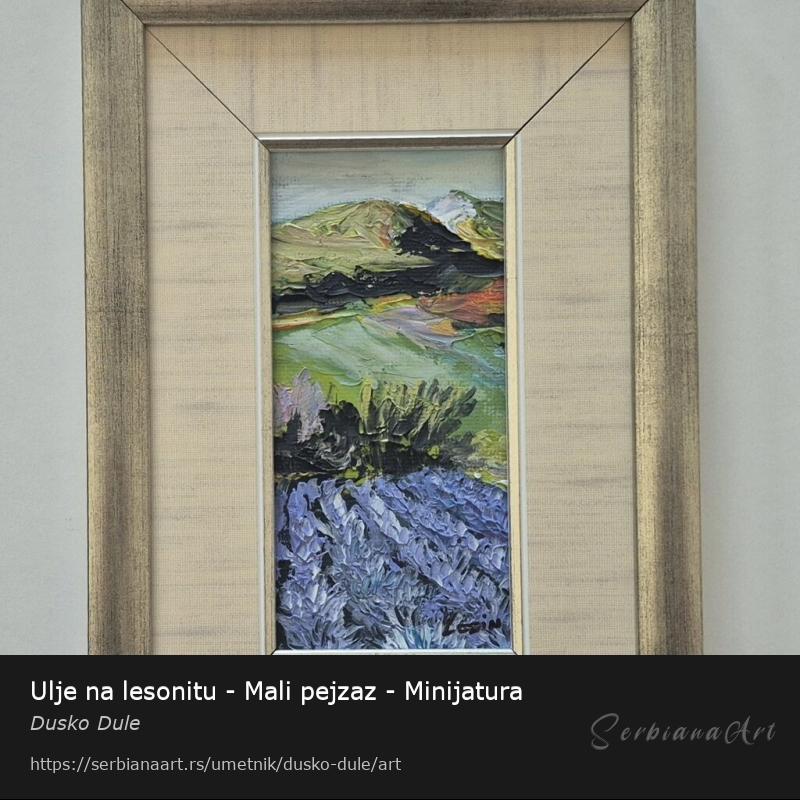 Ulje na lesonitu Mali pejzaz, prelepo umetnicko delo. Minijatura. Slika je uramljena u jako lep ram, dimenzije slike sa ramom 33 x 23. Privatna kolekcija.