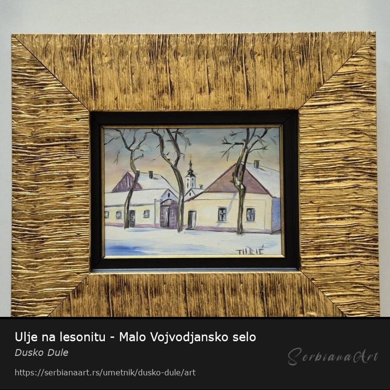 Ulje na lesonitu Malo Vojvodjansko selo, prelepo umetnicko delo. Slika je uramljena u jako lep ram, dimenzije slike sa ramom 38 x 33. Privatna kolekcija.
