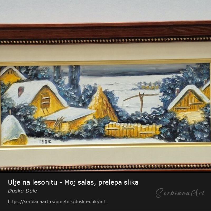 Ulje na lesonitu Moj salas, prelepo umetnicko delo. Slika je uramljena u jako lep ram, dimenzije slike sa ramom 40 x 22. Privatna kolekcija.