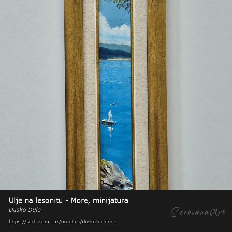Ulje na lesonitu More, minijatura. Prelepo umetnicko delo. Slika je uramljena u jako lep ram, dimenzije slike sa ramom 49 x 14. Privatna kolekcija.