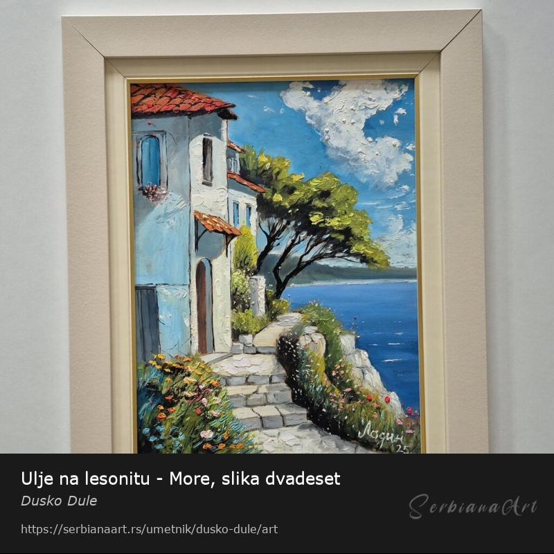 Ulje na lesonitu More, slika dvadeset. Prelepo umetnicko delo. Slika je uramljena u jako lep ram, dimenzije slike sa ramom 52 x 42. Privatna kolekcija.