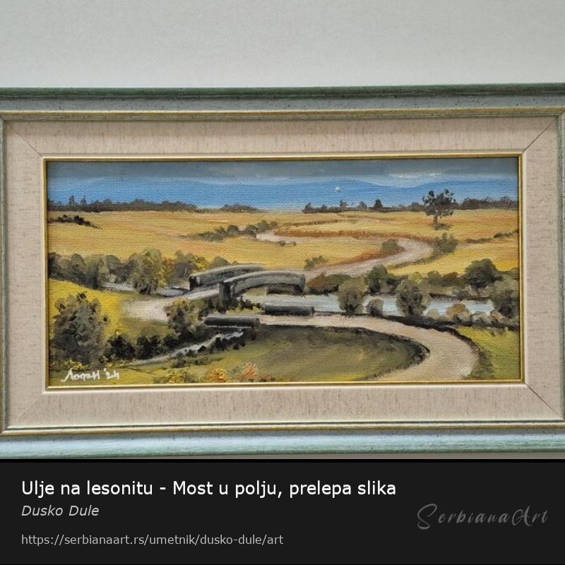 Ulje na lesonitu Most u polju, prelepo umetnicko delo. Slika je uramljena u jako lep ram, dimenzije slike sa ramom 48 x 28. Privatna kolekcija.