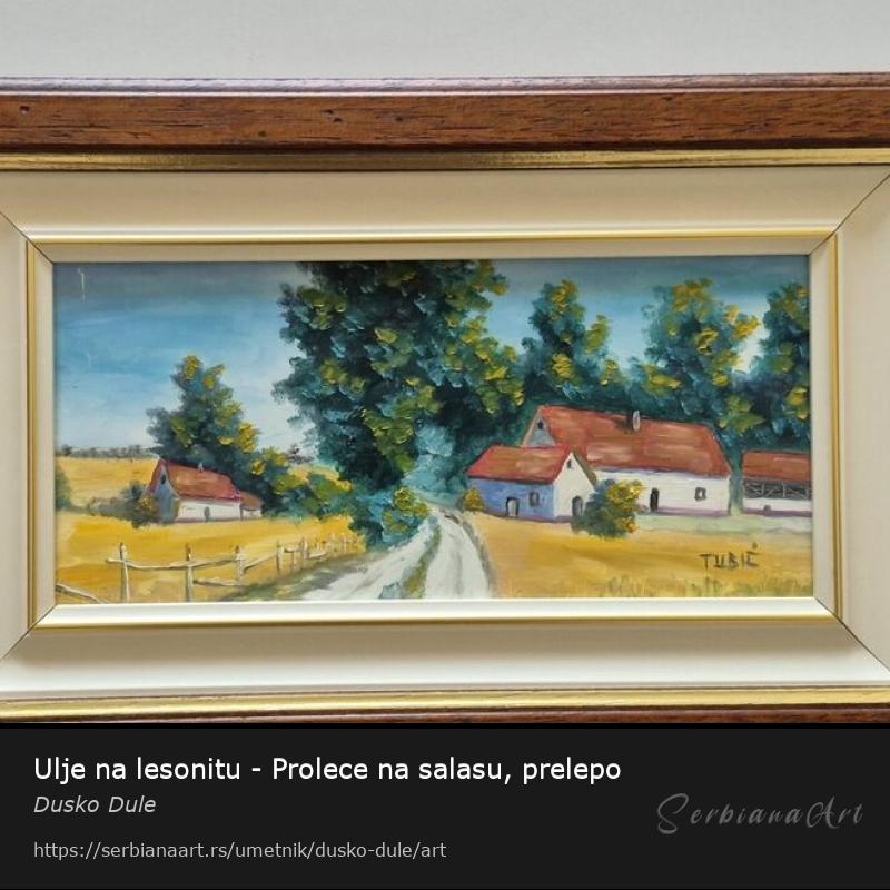 Ulje na lesonitu Prolece na salasu, prelepo umetnicko delo. Slika je uramljena u jako lep ram, dimenzije slike sa ramom 40 x 25. Privatna kolekcija.