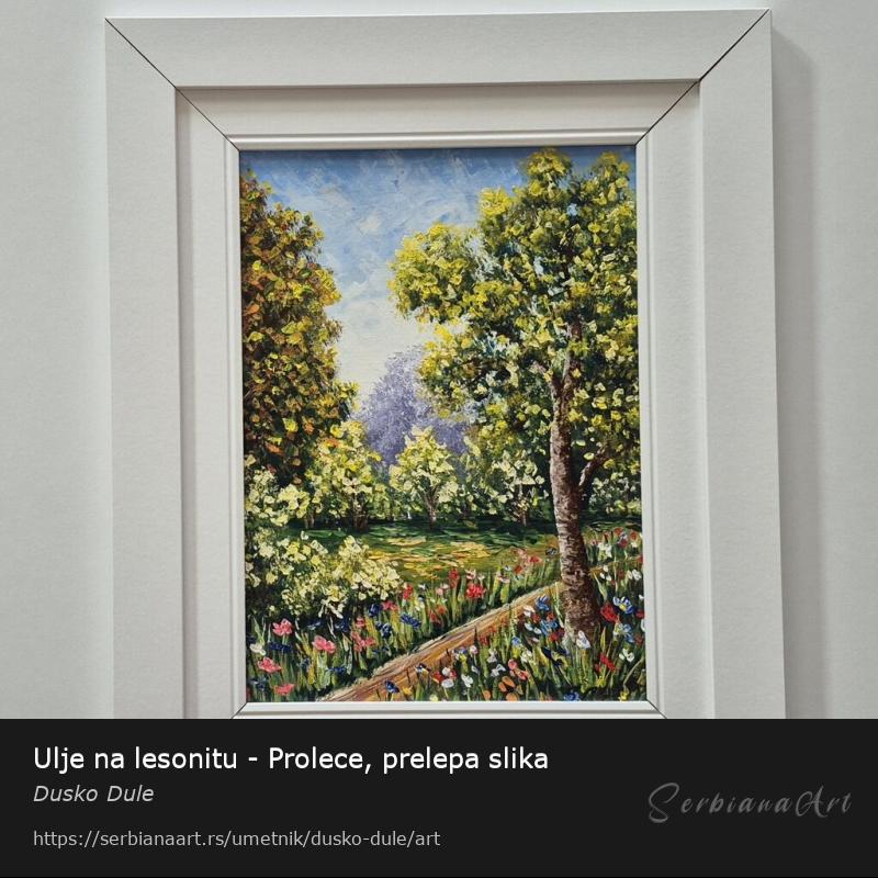 Ulje na lesonitu Prolece, prelepo umetnicko delo. Slika je uramljena u jako lep ram, dimenzije slike sa ramom 49 x 40. Privatna kolekcija.