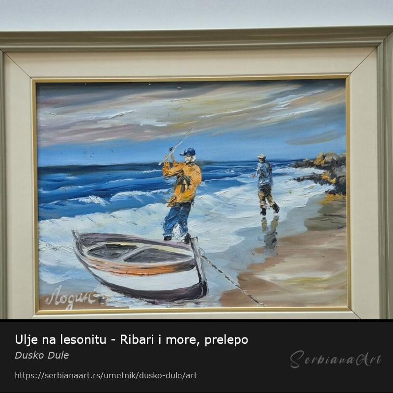 Ulje na lesonitu Ribari i more, prelepo umetnicko delo. Slika je uramljena u jako lep ram, dimenzije slike sa ramom 53 x 43. Privatna kolekcija.