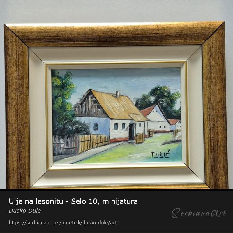 Ulje na lesonitu Selo 10, minijatura. Prelepo umetnicko delo. Slika je uramljena u jako lep ram, dimenzije slike sa ramom 31 x 27. Privatna kolekcija.