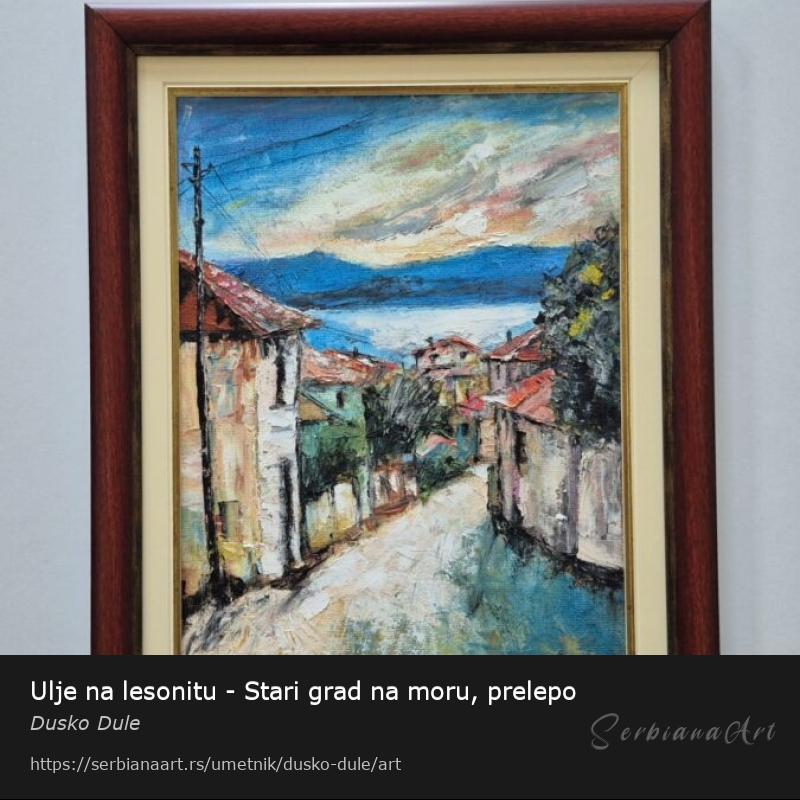 Ulje na lesonitu Stari grad na moru, prelepo umetnicko delo. Slika je uramljena u jako lep ram, dimenzije slike sa ramom 51 x 41. Privatna kolekcija.