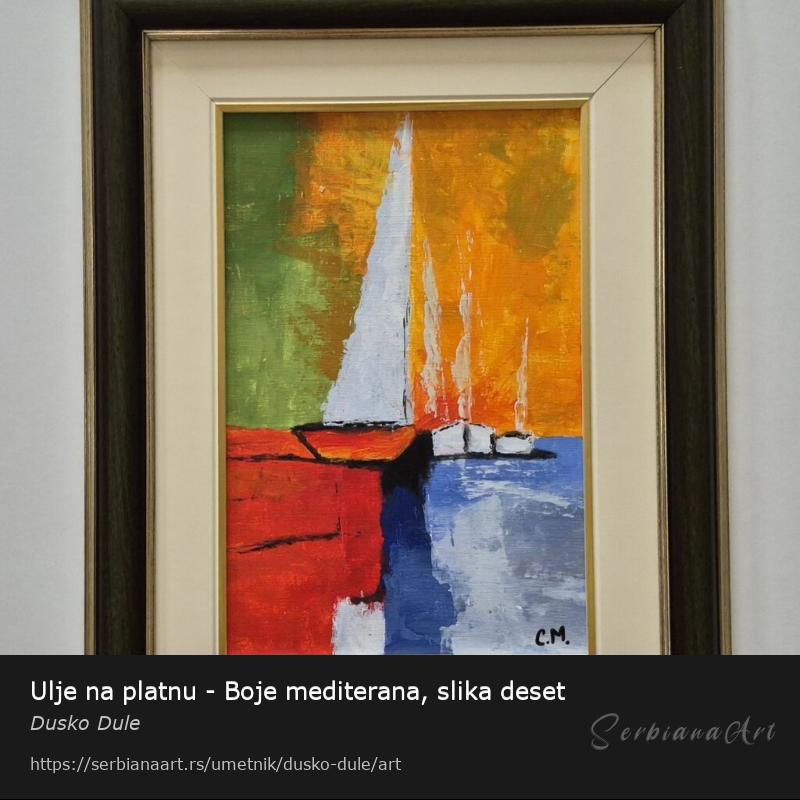 Ulje na platnu Boje mediterana, slika deset. Prelepo umetnicko delo. Slika je uramljena u jako lep ram, dimenzije slike sa ramom 44 x 34. Privatna kolekcija.