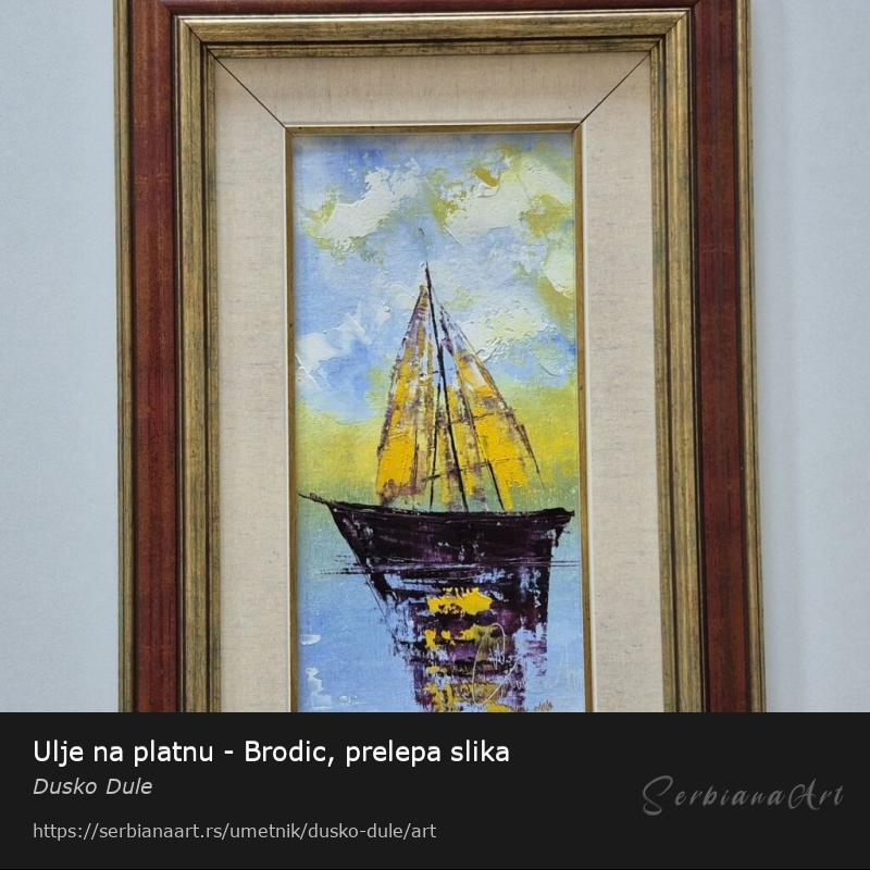 Ulje na platnu Brodic, prelepo umetnicko delo. Slika je uramljena u jako lep ram, dimenzije slike sa ramom 54 x 37. Privatna kolekcija.