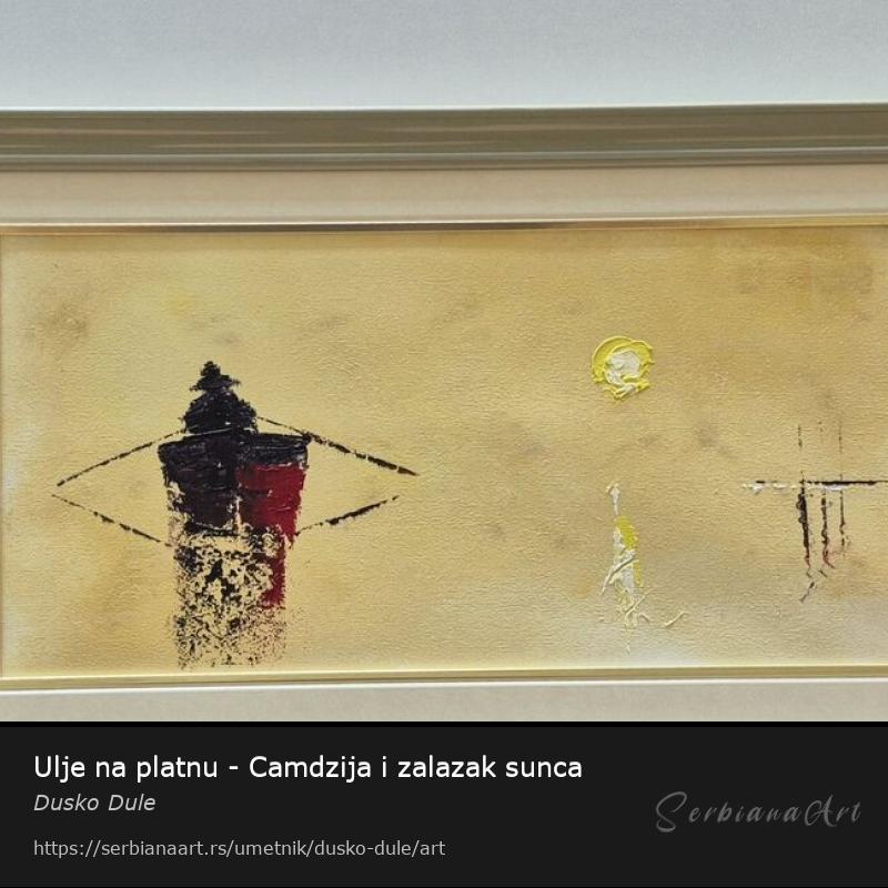 Ulje na platnu Camdzija i zalazak sunca, prelepo umetnicko delo. Slika je uramljena u jako lep ram, dimenzije slike sa ramom 49 x 29. Privatna kolekcija.