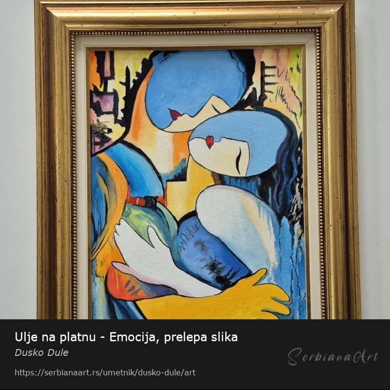 Ulje na platnu Emocije, prelepo umetnicko delo. Slika je uramljena u jako lep ram, dimenzije slike sa ramom 54 x 44. Privatna kolekcija.