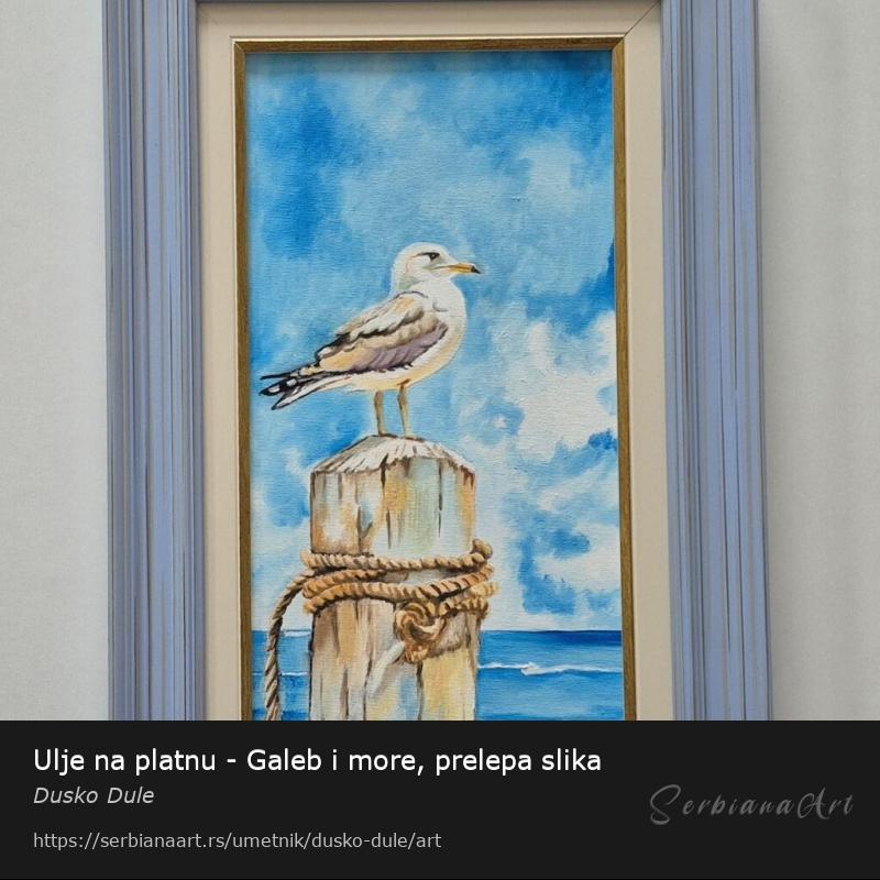 Ulje na platnu Galeb i more, prelepo umetnicko delo. Slika je uramljena u jako lep ram, dimenzije slike sa ramom 53 x 33. Privatna kolekcija.