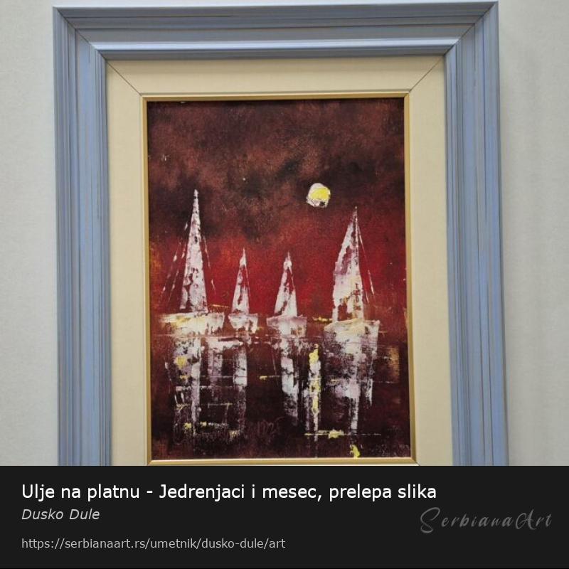Ulje na platnu Jedrenjaci i mesec, prelepo umetnicko delo. Slika je uramljena u jako lep ram, dimenzije slike sa ramom 51 x 41. Privatna kolekcija.