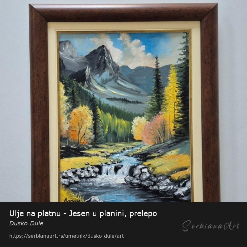 Ulje na platnu Jesen u planini, prelepo umetnicko delo. Slika je uramljena u jako lep ram, dimenzije slike sa ramom 53 x 43. Privatna kolekcija.